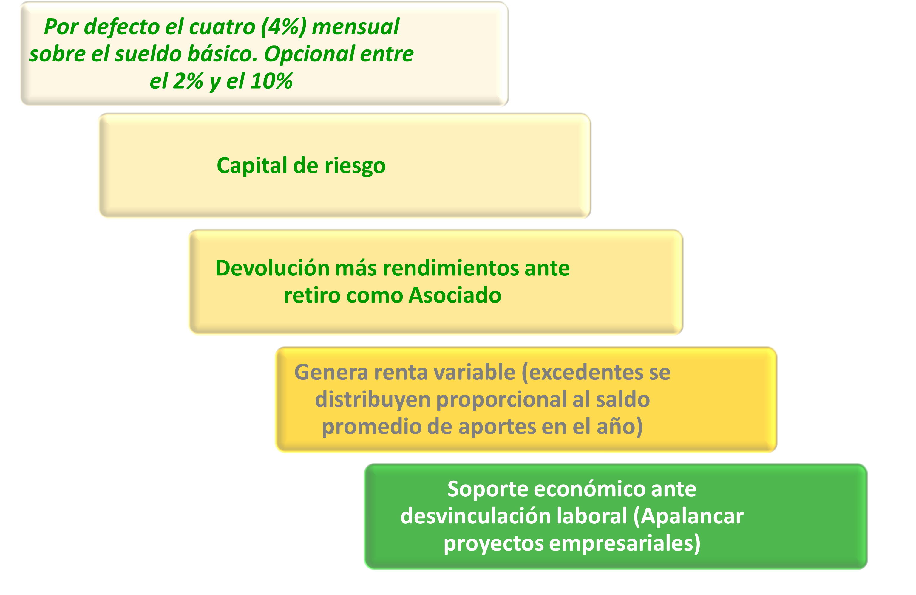 • ✵ Es un Fondo Colectivo en el cual los Asociados realizan unas contribuciones que les permitirá recibir “auxilios específicos” hasta por el monto de la sumatoria de las contribuciones realizadas descontando los auxilios recibidos.