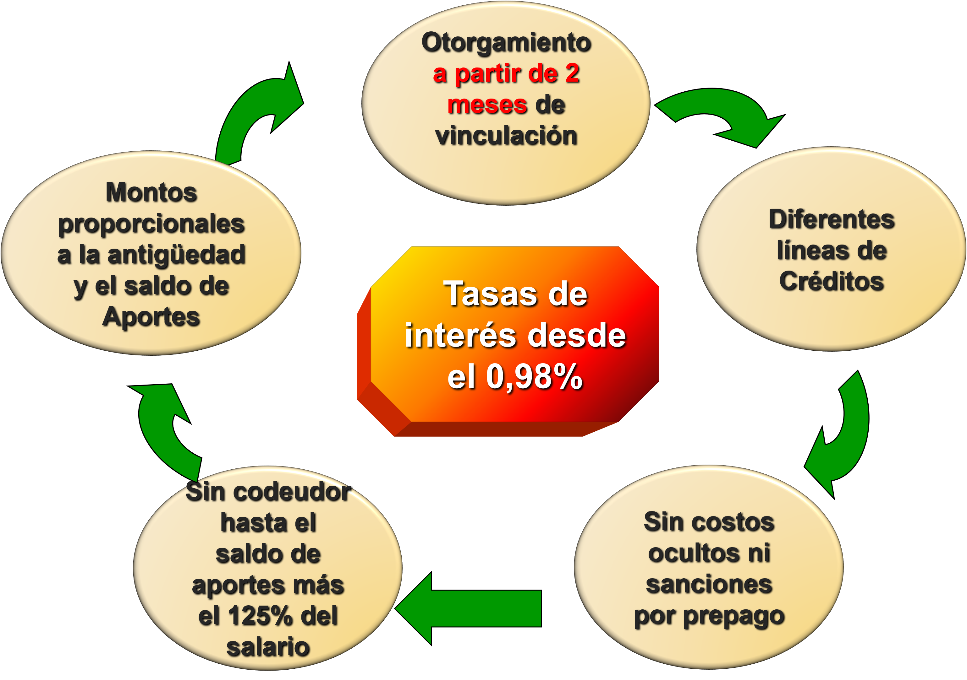 • ✵ Tener acceso a las líneas de crédito de acuerdo con la capacidad de pago, antigüedad y monto en aportes.