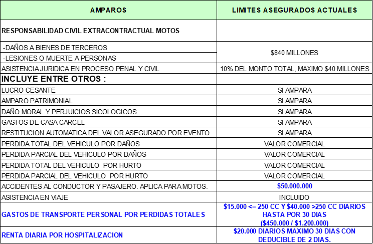 TARIFAS - SEGURO DE MOTOS